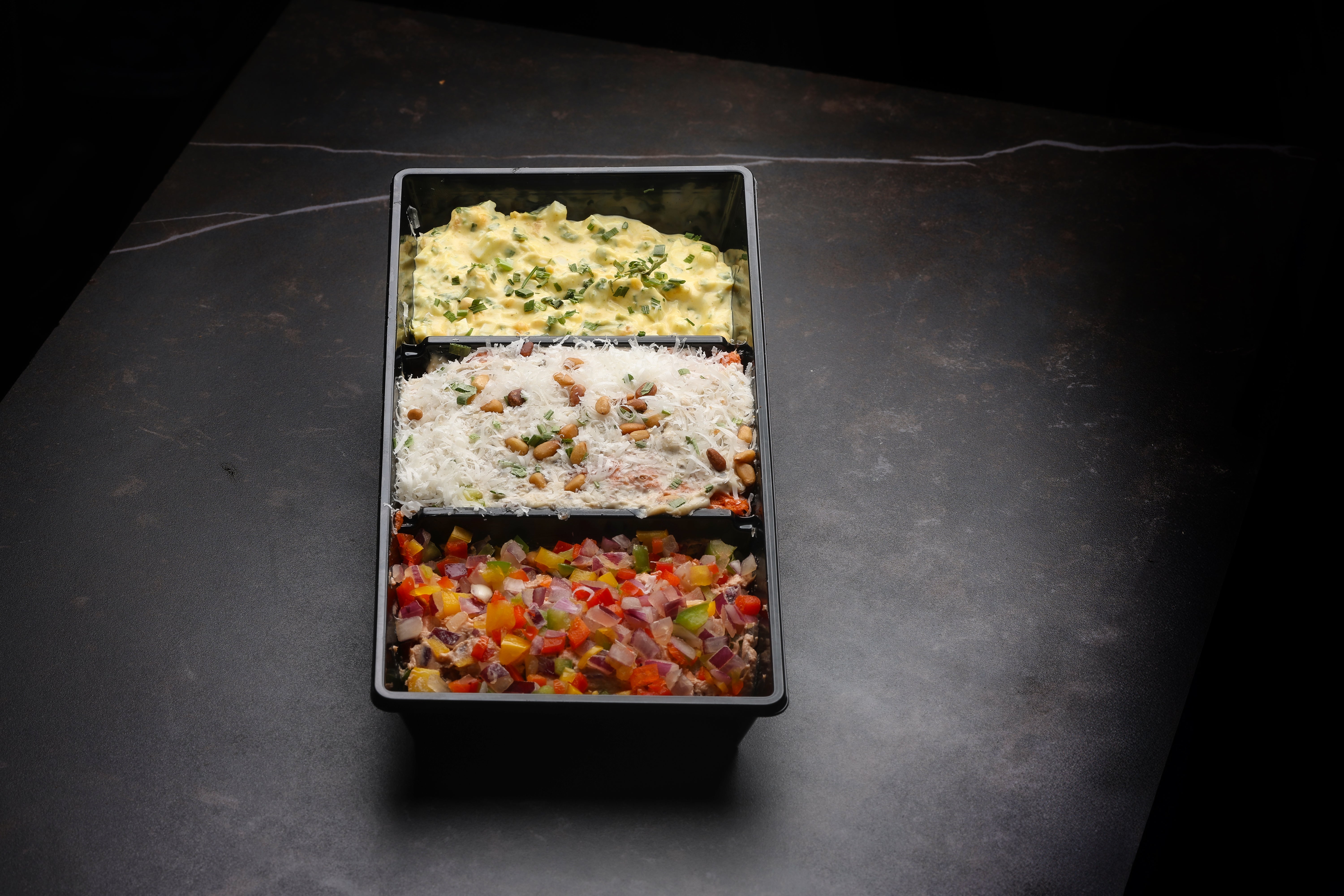 Geniet van drie heerlijke, ambachtelijke salades in één set. Deze saladetrio bevat truffelfilet, likkepot en ei-bieslooksalade. Ideaal voor op een vers broodje, toastje of tijdens de feestdagen op een borrelplank.